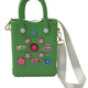 Add a touch of spring to your wardrobe with this lime green mini tote bag from Amelia G's featuring bright flower accents and croc charms. Perfect for casual occasions, this tote comes with double handles and a shoulder strap for versatile carrying options. The bag is made of durable rubber material and measures 6 inches in width and 8 inches in height. This All About Flowers themed bag is perfect for girls who love to accessorize. The PVC charms are removable and can be replaced with other charm themes.  Get your hands on this personalized tote today!