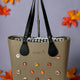 Introducing Beach Vibes, this Eva O Bag exudes effortless coastal charm. Crafted in Khaki with vibrant blue handles adorned with delicate glass beach charms instantly evoke the serenity of the ocean waves and the sandy shores.  The bag is made of durable Eva rubber material and measures 13 inches in...
